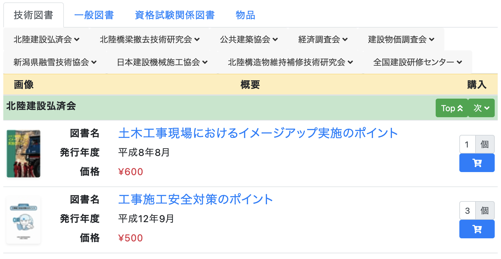 まずページ上部のタブから購入したい図書のジャンルを選択します。