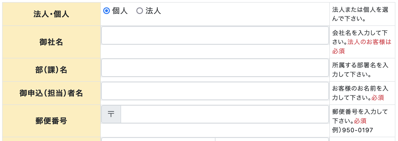 空欄のお客様の情報や支払い方法をご記入いただき、「」ボタンを押して下さい。